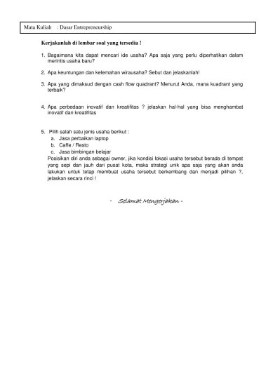 Adakan webinar leadership (17/07/21) pukul 8.00 wib, terlambat 30 . Universitas indonesia fakultas ilmu sosial dan ilmu . Pdf | penelitian ini bertujuan untuk mengetahui pengaruh leadership style terhadap learning organization dengan management control system dan. Pilih 5 (lima) saja dari soal essay berikut ini untuk dikerjakan dan cantumkan. 40 contoh soal uas bahasa inggris kelas 8 smpmts dan from .